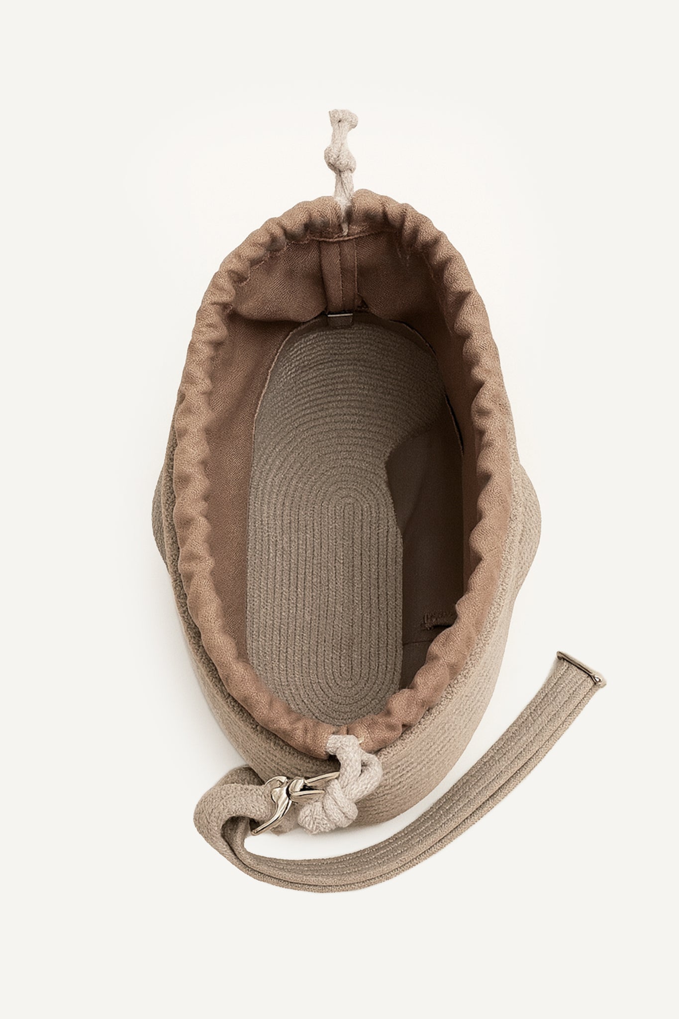 This beige handmade crochet crossbody bag is made from durable, natural cotton cord for a soft yet structured finish. This lightweight shoulder bag features an adjustable strap and a secure drawstring closure for hands-free wear. Perfect for work, travel, shopping, or daily essentials. Inside is a secure zipper pocket to keep your phone, keys, or small valuables organized and easy to reach. Designed for comfort and versatility, this modern woven crossbody is both stylish and practical, making it an ideal crossbody bag for women.
